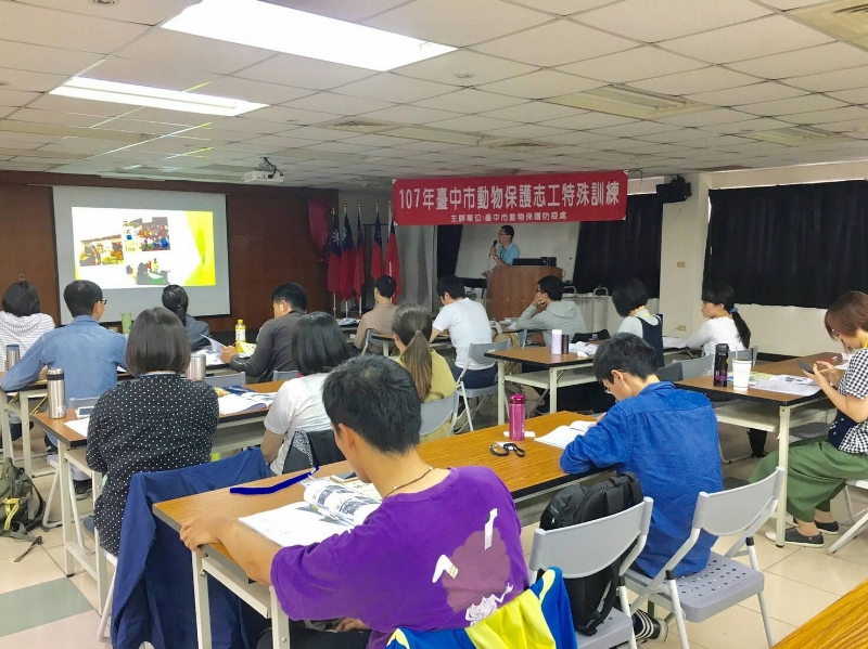 台中市動保處日前展開今年首次動保志工召募活動,共吸引38位民眾參加,昨(16)日舉辦志工特殊訓練課程,除介紹動物保護相關法規,讓志工更了解法律常識外,課程中還加入犬貓疾病的預防醫學與口語表達訓練,增強志工對犬貓飼養照顧的基本觀念,全力為日後的動保服務做足準備。