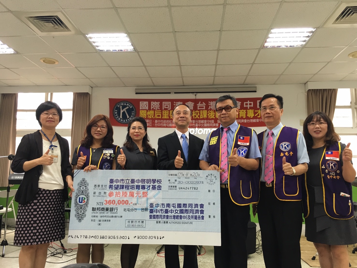 國際同濟會致力公益,南屯國際同濟會前會長朱東源多年前了解台中市啟明學校及視障家庭的需求後,即動員中B區各分會一起貢獻經費投入相關課程及活動,協助視障學生完成學習音樂的夢想。台中市政府教育局表示,感謝國際同濟會的善行,盼未來有更多民間力量共同關心特殊教育,讓特教學生實現夢想。
