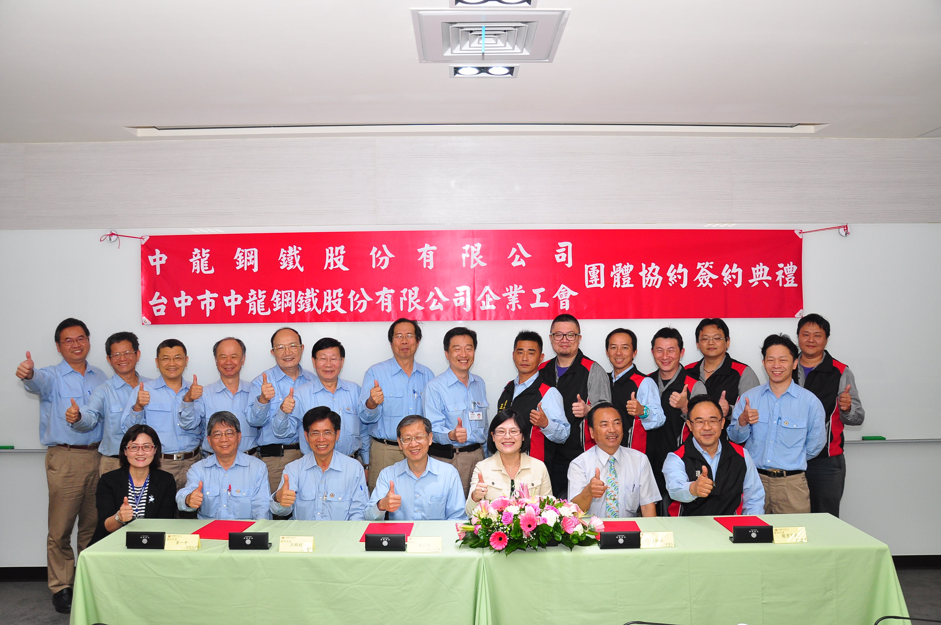 勞工局指出,中龍鋼鐵與企業工會自101年8月22日起召開第一次團體協商會議,歷經近6年、31次協商會議,今日完成團體協約簽訂;簽訂的條文中,特別著重在提升勞工勞動條件與工會保護政策,包括如因業務性質變更而減少員工時,得優先將其調動至其他單位,以保障員工的工作權;員工工作滿一定年資的特別休假日數採從優核給;明定產銷盈餘獎金辦法及調薪制度化,藉以激勵員工,留任人才;開辦「員工儲蓄信託提存金」,並提撥一定額度獎勵金,對同仁退休時增添一份保障;公司內部的各項溝通管道定期化與制度化,落實勞資溝通平台,實踐勞工參與精神。