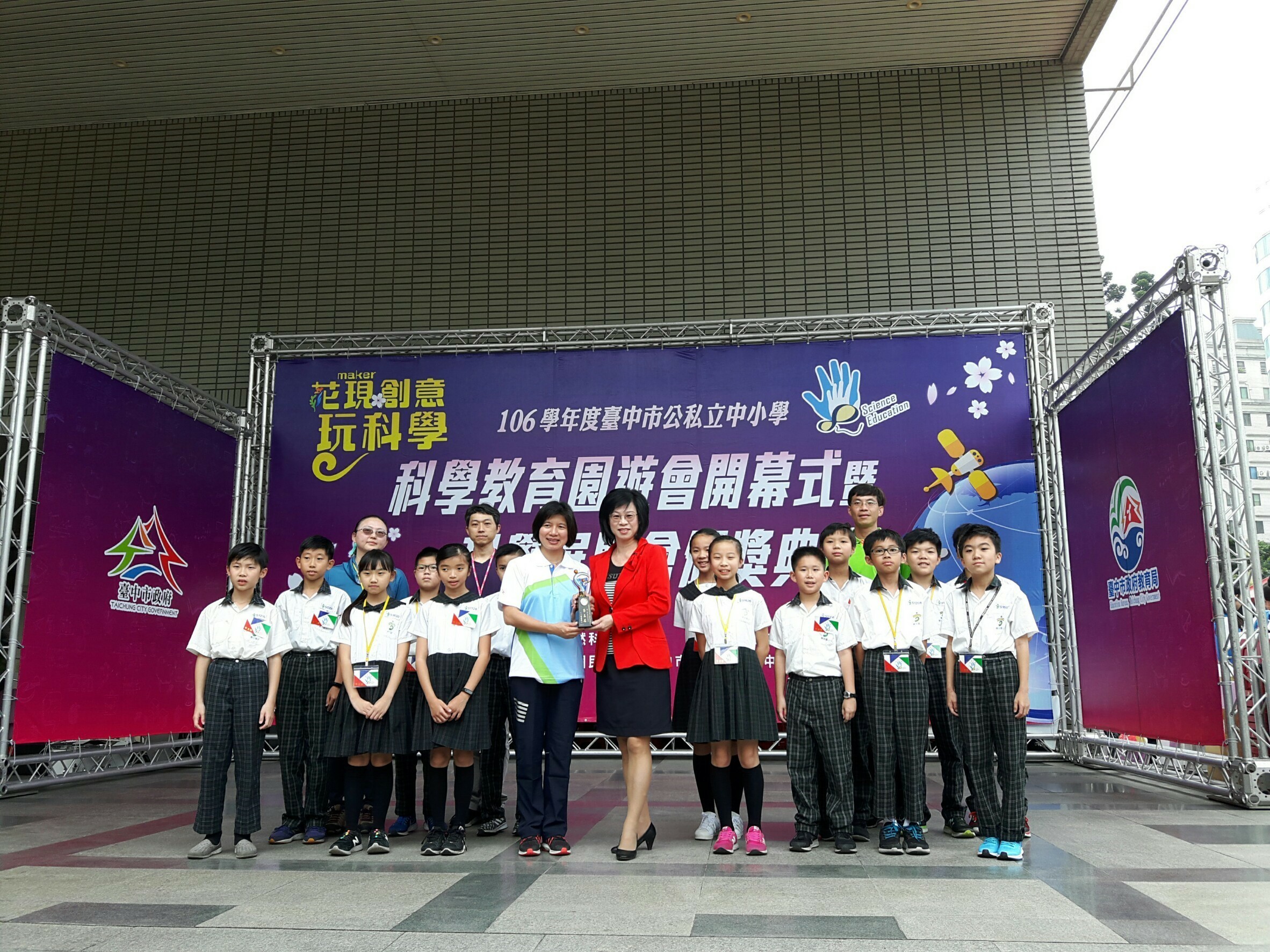 台中市106學年度中小學科學展覽會頒獎典禮暨科學教育園遊會今(21)日在科博館舉行開幕典禮,各校攤位皆以「創意遊科學.台中創客行」為主題,101個攤位展現科學創意,饒富科學原理的活動,吸引大批家長帶著孩子到場同樂,副市長林依瑩及科博館長孫維新也頒獎肯定學生創意。