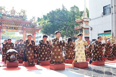 元保宮大道公廟建於清代,至今已有228年歷史,迎奉醫藥的神保生大帝,每年農曆3月15日保生大帝誕辰時,均舉辦遶境祈福活動,也是元保宮重要慶典。今起駕儀式由主委賴信雄擔任主祭官,市長林佳龍擔任陪祭官,三獻禮後由林市長點燃第一發起馬炮,宣告起駕儀式正式開始,市議員曾朝榮、賴佳微、陳政顯,以及立委盧秀燕、市議員范淞育服務處代表等人都到場觀禮。