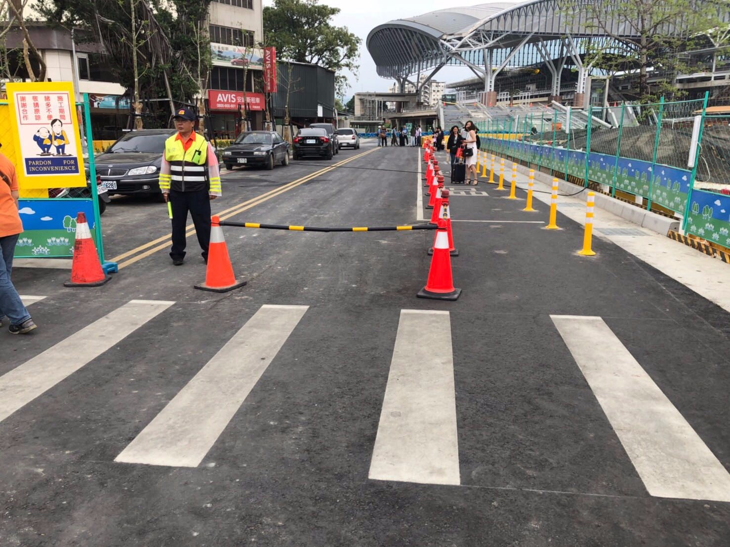 交通局長王義川也表示,為減緩對火車站周邊交通衝擊並讓用路人提前適應動線調整,提前於4月27日9時開放新闢道路供臨停上下客及搭乘計程車,並將廣場人行通道再加寬。火車站前將同時有2處臨停上下客區域及3條人行通道,呼籲民眾多利用新闢道路接送及迴轉。預訂4月28日上午7時封閉建國路路側原有臨停區及計程車排班區,正式完成交通動線切換。