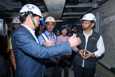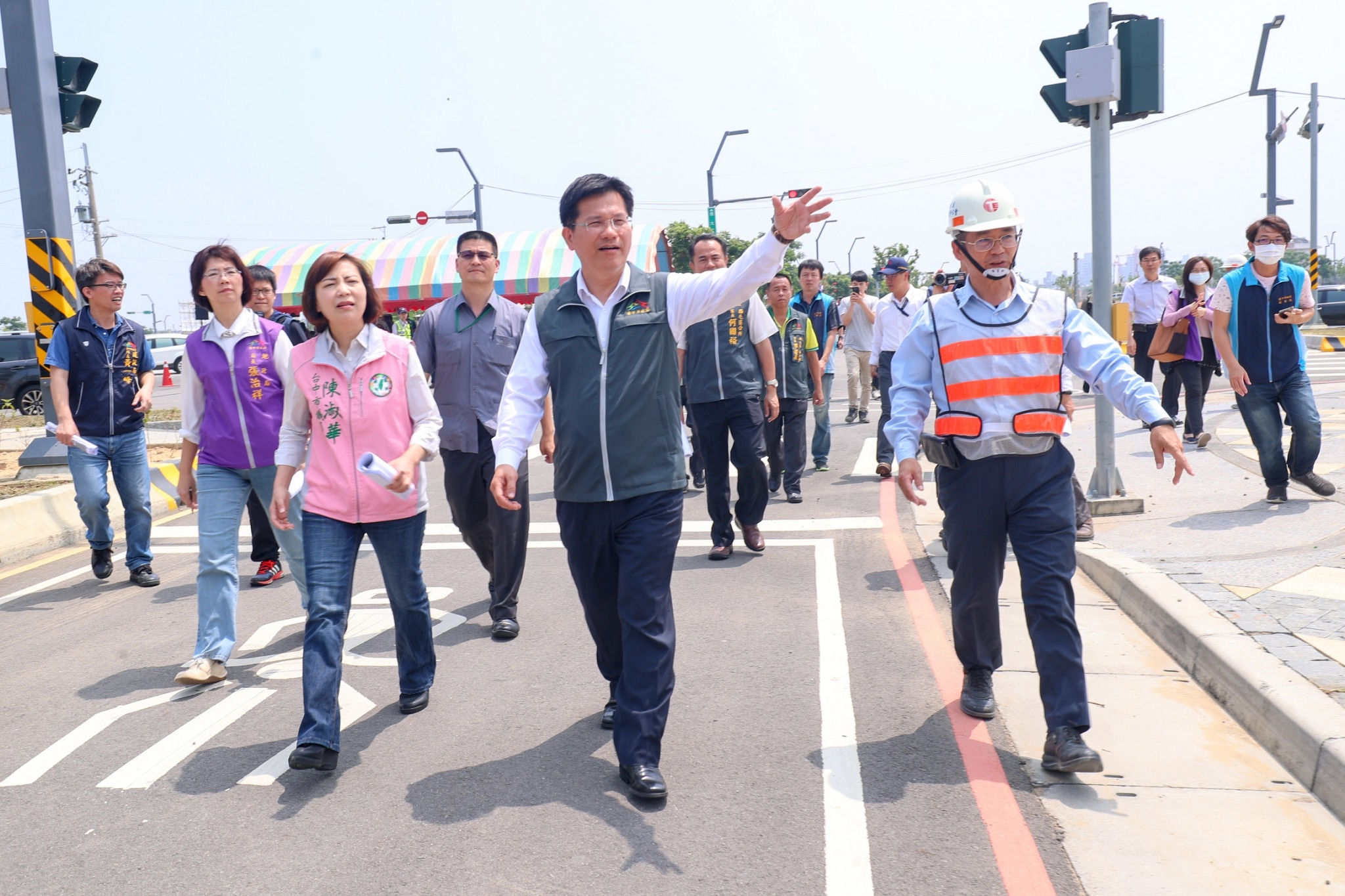 今日林市長在建設局長黃玉霖、地政局長張治祥等人的陪同下,前往水湳視察中水道與計畫道路工程,市議員陳淑華、立委張廖萬堅與市議員陳成添服務處代表、在地里長等人也都到場關心。