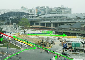 王局長進一步說明,最後一階段施工範圍涵蓋現有計程車排班區及臨停接送區,施工圍籬架設後,外側雙向皆留有3線車道供車輛通行,此外,該局配合施工將臨停及計程車排班區動線調整,無論從左側人行通道或是右側人行通道的民眾,通道外側皆有規劃計程車排班區或是公車及臨停接送區,讓民眾在轉乘上,不必穿越車流,能更安全、快速地進入台中火車站。