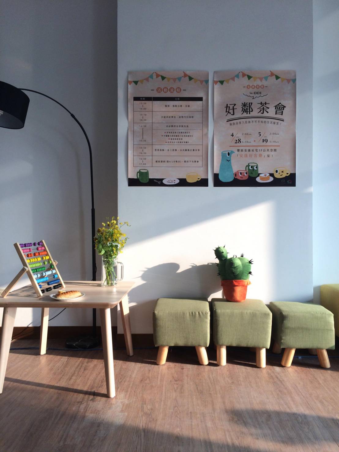 豐原安康段社會住宅自4月19日起陸續有確定入住的居民遷入,住宅處昨(28)日在社宅1樓開放空間「安康好客廳」舉辦首場「好鄰茶會」,由住宅處委託好伴社規劃,邀請入住居民前來認識鄰居與進駐社宅的組織,包括市府都發局長王俊傑與住宅處處長許由興皆現場,關心茶會舉辦情形。5月19日還有第二場茶會活動。