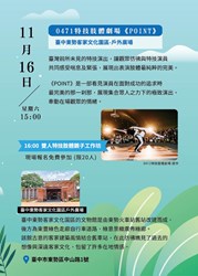 臺灣前所未見的特技演出,讓觀眾彷彿與特技演員共同感受喘息及緊張,展現出表演肢體最純粹的完美。《POINT》是一部看見演員在面對成功的追求時最完美的那一剎那,展現集合眾人之力下的極致演出,牽動在場觀眾的情緒。
