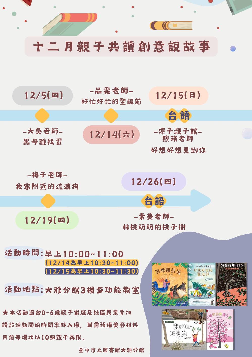 【大雅分館】12/19 親子共讀創意說故事(含DIY活動)-小雞過耶誕節(國語)