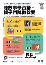講題:台語親子故事活動,透過繪本《123遊台灣》,引導孩子唸讀台灣地名,運用不同的交通工具一起去旅行!