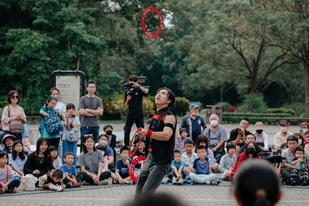 演出結合體操翻滾、倒立技巧、雜耍彈球,更有小朋友喜愛的氣球互動,邀請親子同樂。