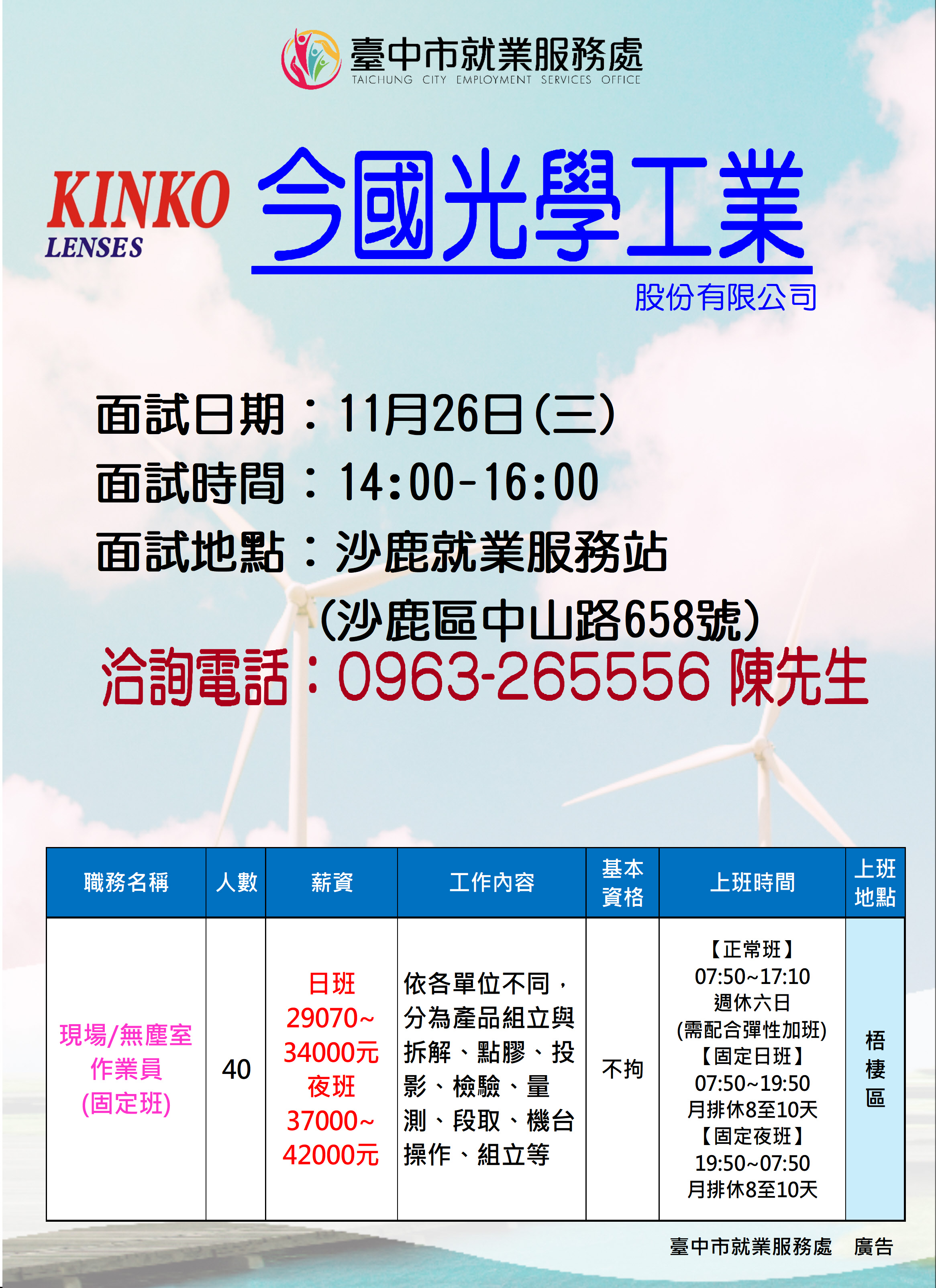 11/26(三)今國光學工業股份有限公司單一廠商徵才活動