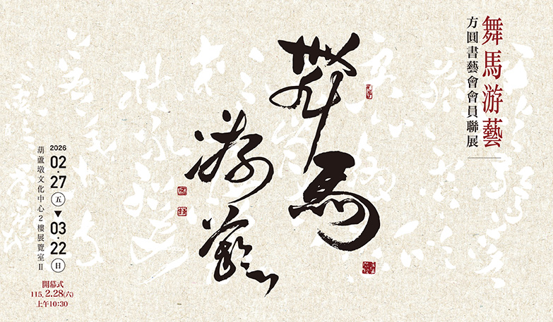 臺中市方圓書藝會以傳承書法與深耕文化為宗旨,學員皆書藝同好由書法家施永華老師指導,以「師古而不泥古」為理念,引導學員融合傳統與創新,作品兼具古典法度與個人風格。本展主題「舞馬游藝」展現書法的動態美與人文精神,呼應靈動與自由的意象。呈現書藝的藝術深度與人文溫度,為市民帶來豐富的文化饗宴。