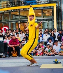 香蕉先生擅長默劇mix獨輪車特技、幽默風趣的腹語與氣球演出