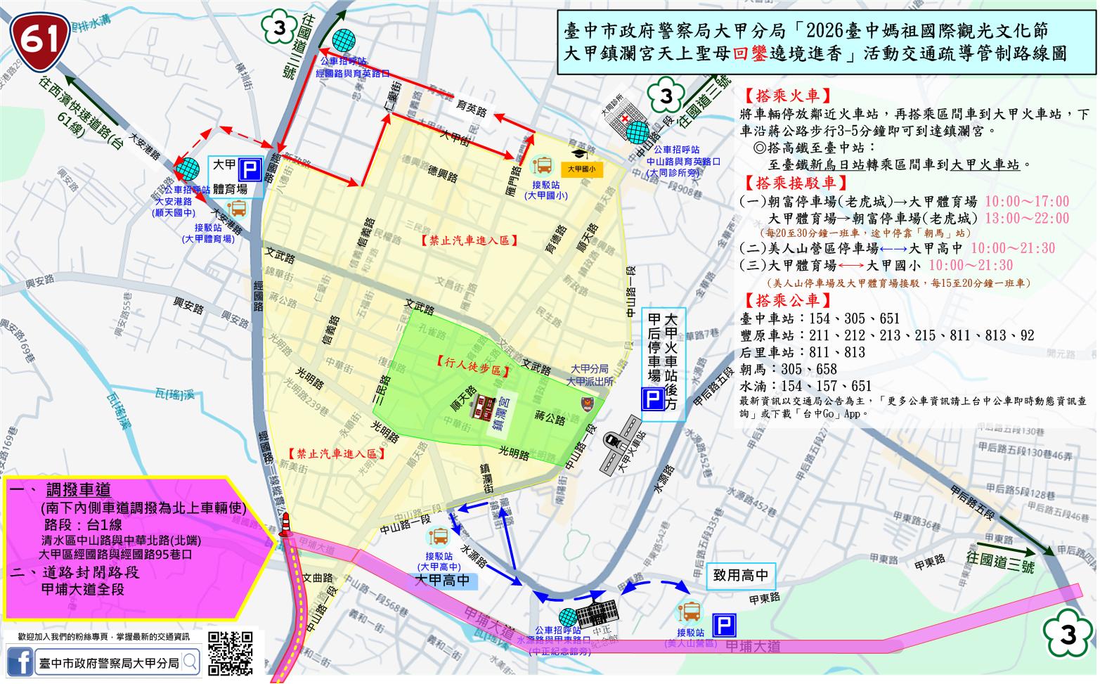 大甲媽祖起駕遶境交通疏導管制及接駁車資訊