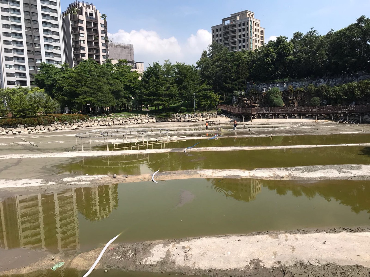 建設局說明,水池清淤工程完成後大約14天,將砌蓮花池,預計9月底可注滿水位,待水質穩定後,將再依據不同動物對水質的適應期,陸續將安置在外的動物分批遷回,屆時將使動物群有更好的棲息空間。(8/7*13)*建設局