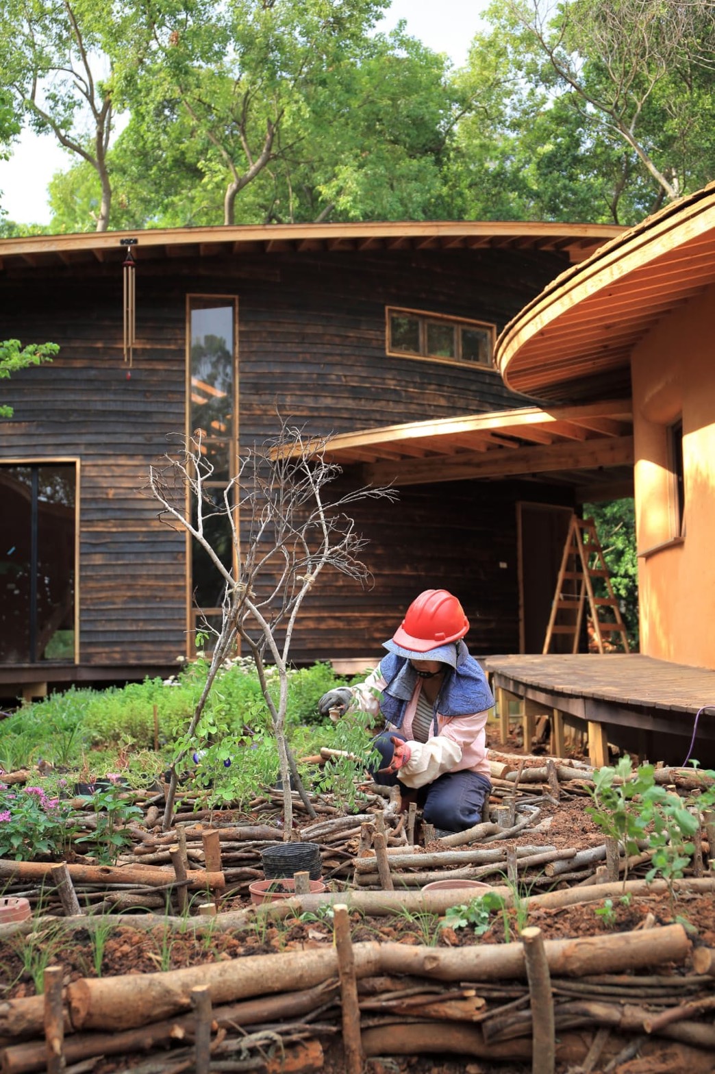台中花博后里森林園區「永續家園」,採用「地、水、風、火、人」5大設計元素,打造森林樂園,其中,「四口之家」是兼具生態保育功能的永續建築,展現先民的傳統智慧及新式工法,為保留原生植物並調整規劃設計,傳遞人與自然共生共好的花博核心理念。