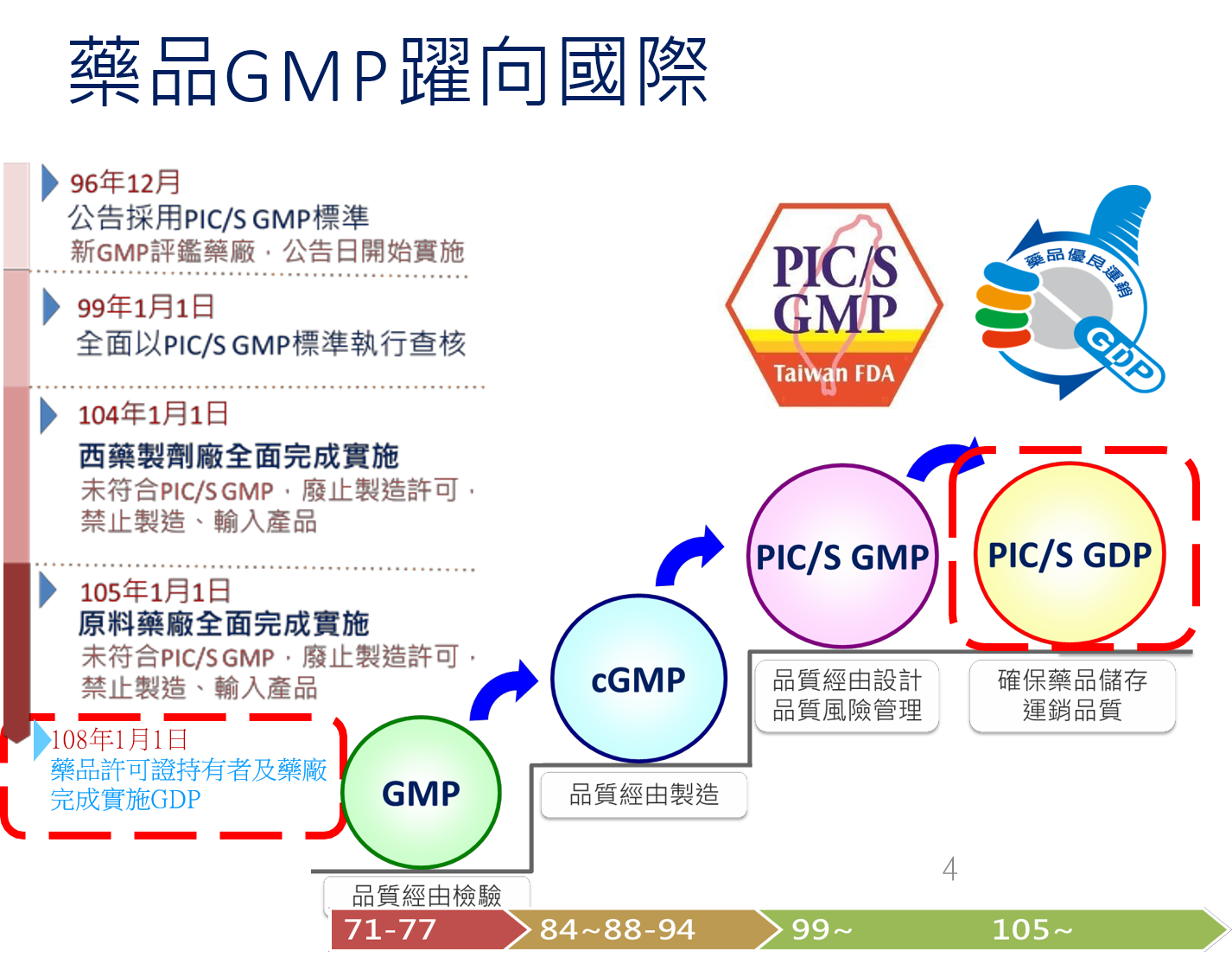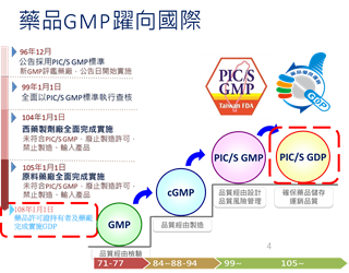 食安處說明,國際藥品稽查協約組織(PIC/S)103年6月1日公告藥品優良運銷規範(GDP),為使我國藥品運銷管理制度與國際接軌,食藥署針對所有西藥批發、輸入及輸出業者,逐步實施促進完成藥品GDP。