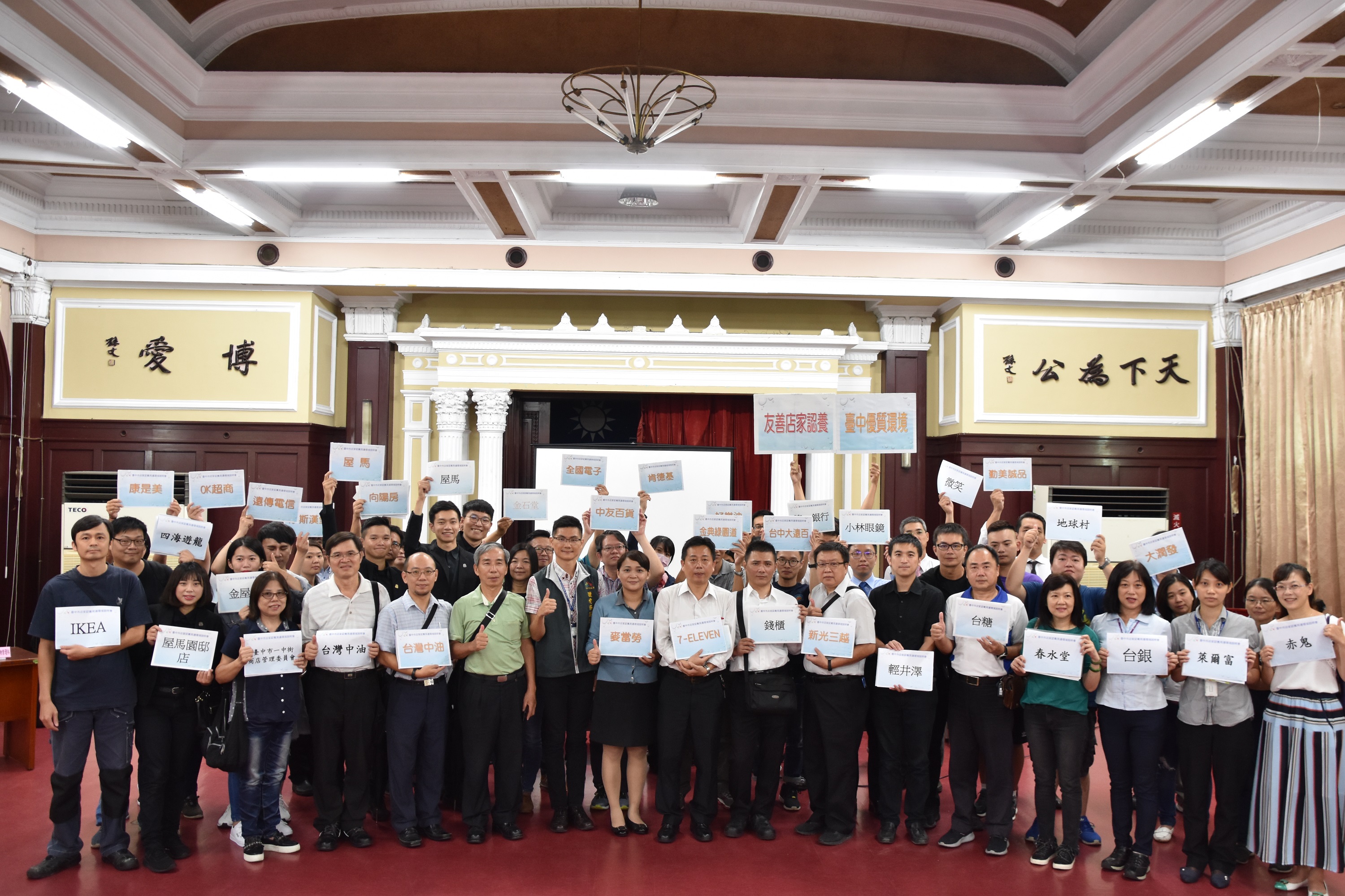說明會當天參與店家相當踴躍,包括麥當勞、摩斯漢堡、肯德基、萊爾富、OK便利商店、7-11、台中大遠百、中友百貨、新光三越、大潤發、勤美誠品、金典綠園道、台糖量販、家樂福、全聯、好樂迪、錢櫃、屋馬燒肉、全國電子、小林眼鏡、IKEA宜家家居、康是美、台亞石油、中國石油、向陽房、地球村、輕井澤、四海遊龍、遠傳電信、第一銀行、臺灣銀行、玉山銀行、微笑運動商品、金石堂、楓康超市、赤鬼牛排、聯翔餅店、地球村、春水堂及一中街商店管理委員會等共計39家企業參與。