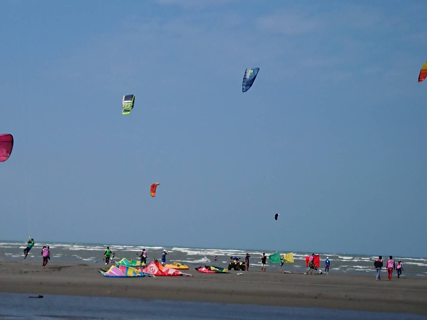 台中大安濱海樂園風箏衝浪競賽今(20)日在大安濱海樂園熱鬧登場,來自日本、香港、澳門等國家或地區的好手,迎「風」而來同場競技,賽事包含「跳高表演賽」及「繞標競速賽」,還有岸上風箏衝浪體驗等活動,吸引民眾熱烈參與。