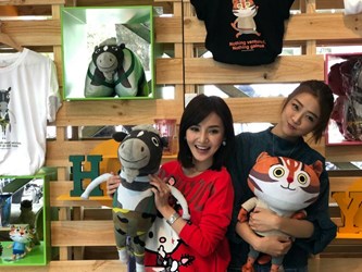 兩人也參觀位於后里馬場園區中的官方紀念品旗艦店,看見石虎家族與歐米馬時直呼「好可愛」!並表示回去也要和粉絲、朋友分享今天在花博看到的、吃到的、聽到的。