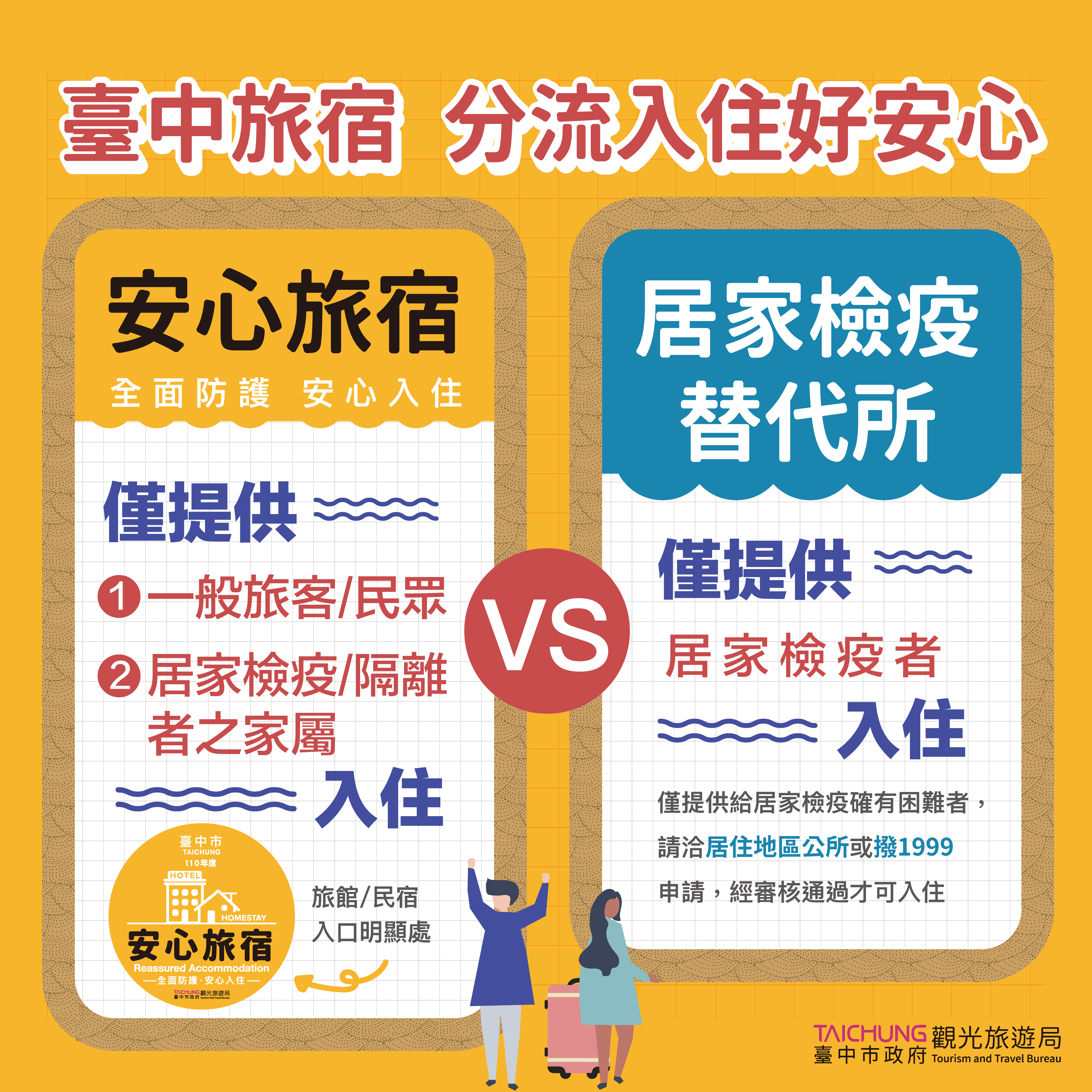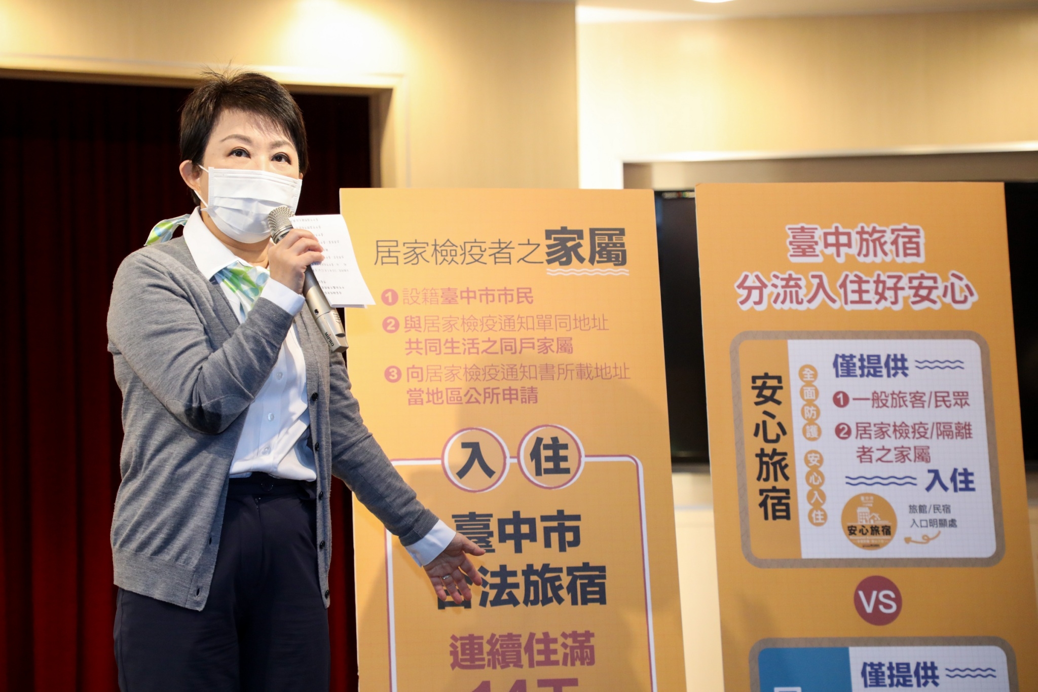 觀旅局長林筱淇表示,市府與市民共同防疫,希望減輕居家檢疫者家戶負擔,凡居家檢疫及隔離者的二親等內血親或姻親家屬,連續14天入住同一家台中市合法旅宿業,每戶補助最高5000元,於住宿結束次日起,向居家隔離或居家檢疫通知書所載之隔離地址當地區公所提出申請,實質補貼居家檢疫者家屬住宿旅宿費用開銷。