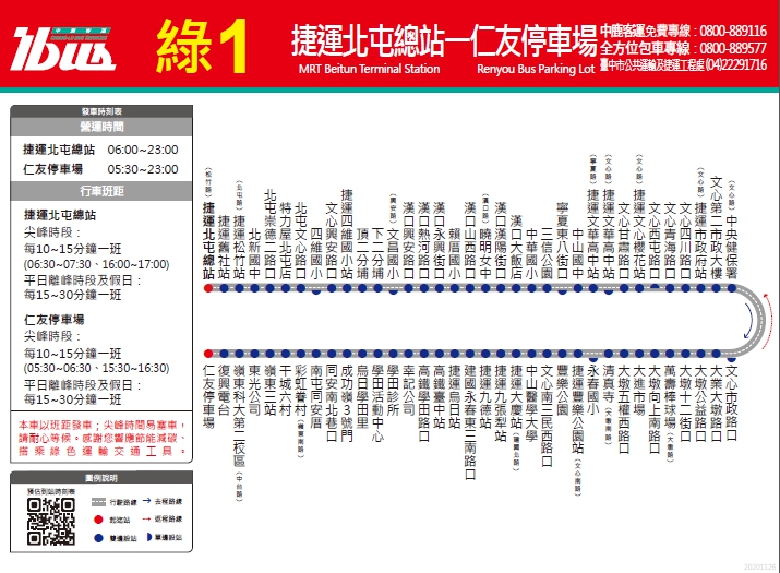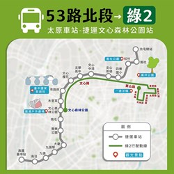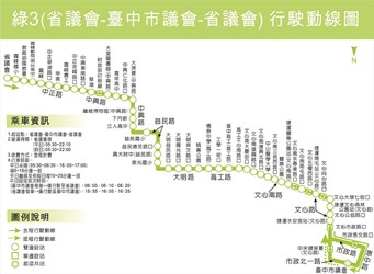 台中捷運綠線將於425日通車營運,為讓運輸資源發揮最大效用,台中市政府交通局已針對捷運沿線新闢5條公車路線,並調整10條公車行駛動線及停靠站點,自426日起,與捷運高重疊的80053路更將進行大幅度調整及轉型,以「綠」字開頭重新編號,800路調整為「綠1」,起訖點不變,53路調整為南北2段,北段為「綠2」、南段為「綠3」,轉型捷運接駁公車,提升大眾運輸使用率。