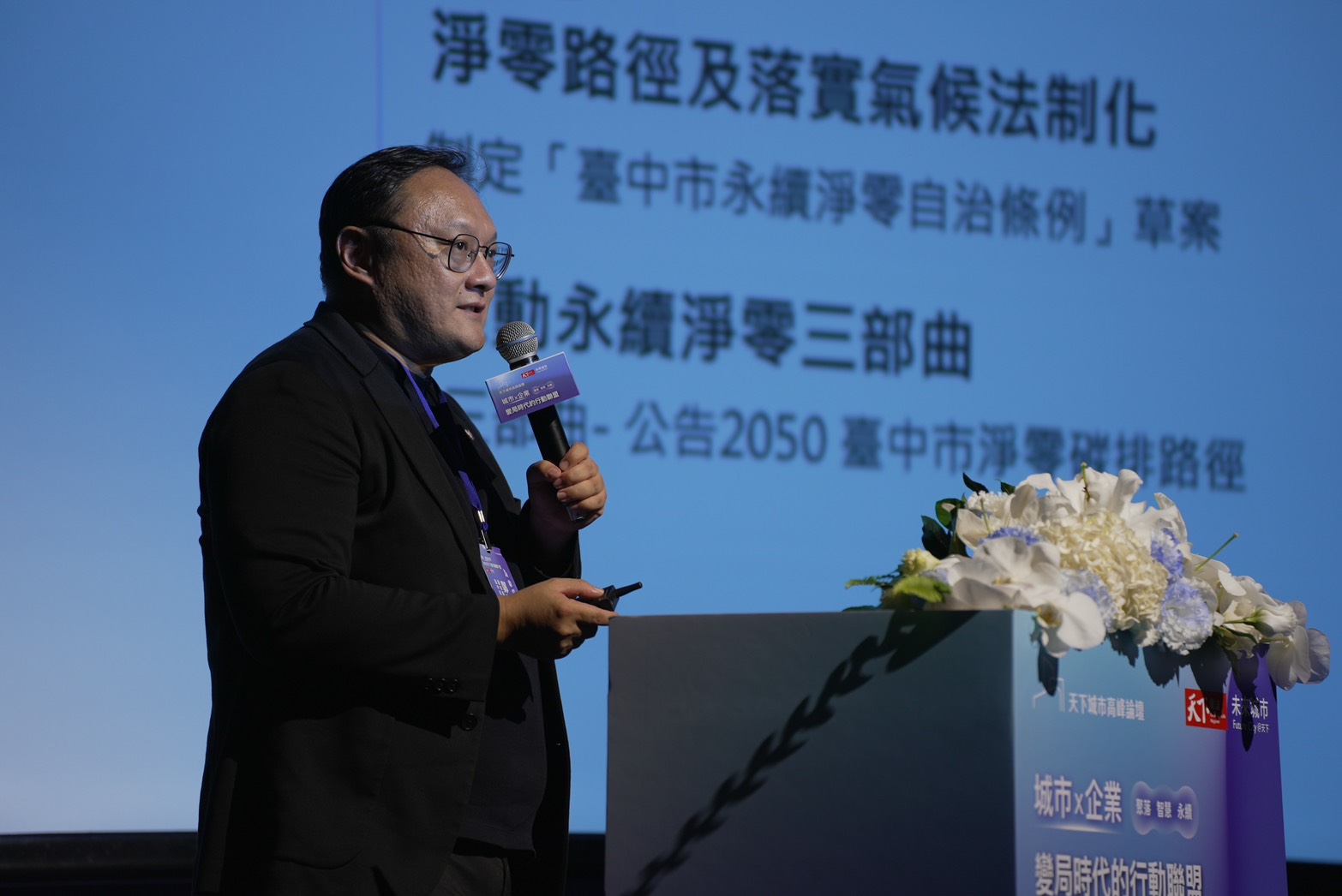 論壇中,鄭副市長分享三大永續發展方向,在經濟面,透過台中購物節與爵士音樂節帶動逾700億元消費產值;在社會面,公托、公幼與長照2.0全面推動,托育資源成長達9倍、長照資源行政區涵蓋率更達100%。在環境面,台中更以「藍天白雲行動計畫」為核心,導入 AIoT 空污監測、車載式AI判煙與大數據分析,精準掌握污染熱區並即時調度稽查;同時推動再生能源建設與電動運具普及,全面邁向淨零目標。