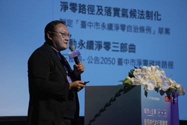 鄭副市長表示,台中自2010年起啟動低碳策略,率全國之先成立市長轄下專責單位推動氣候治理,逐步推展至永續發展與淨零碳排。2023年市府完成《永續淨零自治條例》草案,並公布2050淨零碳排路徑,展現台中市邁向永續淨零的決心。他指出,市府已跨局處整合148項永續指標與145項計畫,全方位落實聯合國17項永續發展目標(SDGs),確保經濟、社會、環境三面向平衡發展。