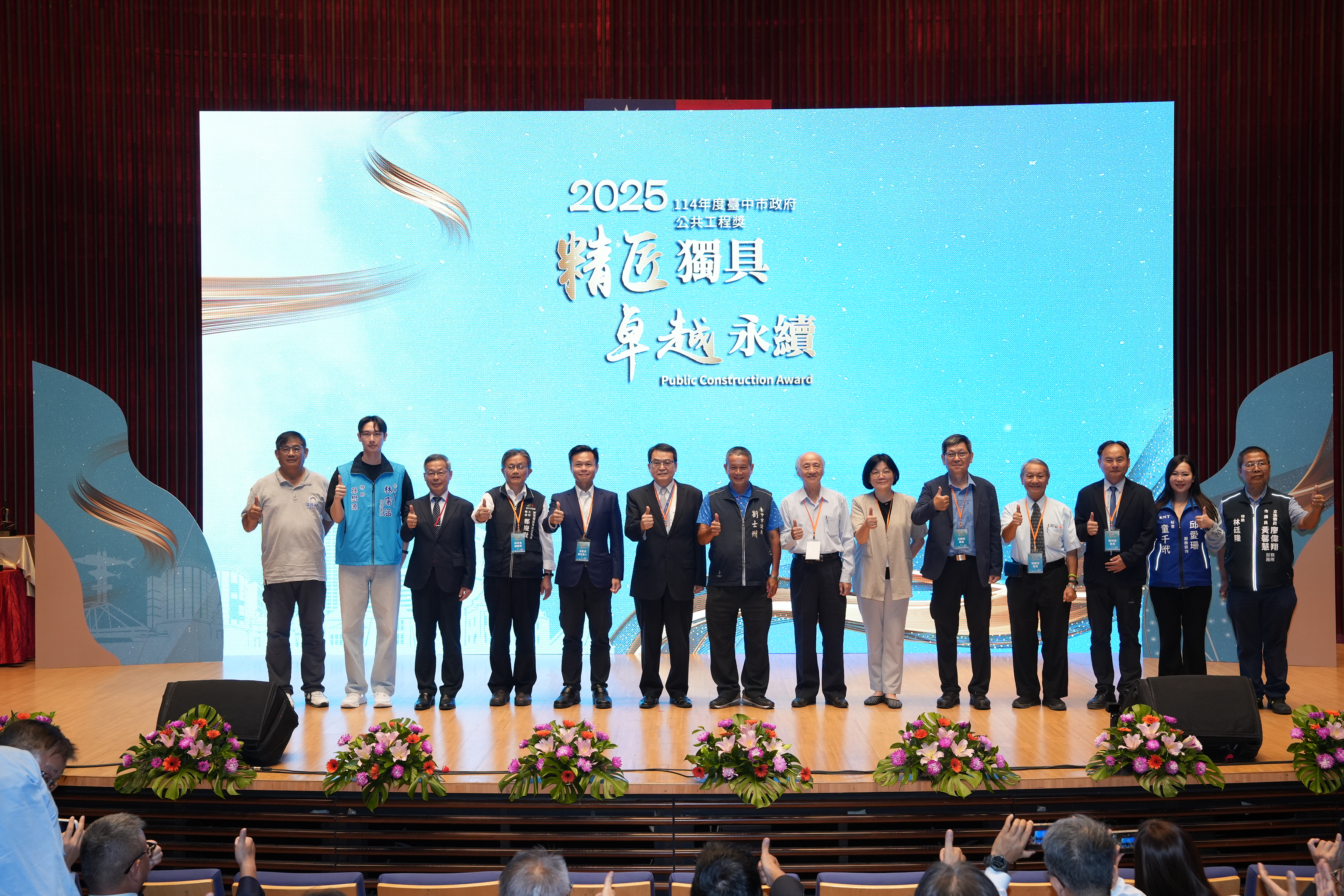 另17件優等項目也涵蓋了下水道、風景區步道及停車場等改善工程,圖書館、運動中心及行政中心等興建,無一不是強化改善台中市各區塊的市政建設,期望透過「台中市政府公共工程獎」頒獎典禮,黃秘書長感謝所有為台中建設的民間團隊及肯定他們辛勞的付出。