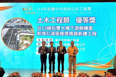 建設局長陳大田表示,這些榮耀屬於所有投入工程的同仁、設計團隊與施工團隊,感謝評審的高度肯定;公共工程獎不僅是專業的肯定,更是推動城市進步的重要動力,未來將持續精進施工品質與安全管理,為市民打造更優質、宜居的生活環境。