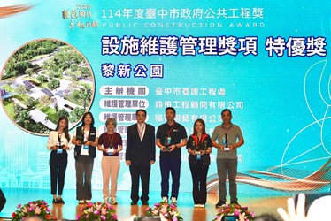 此外,設施維護管理類獎項由「黎新公園」奪得,而此屆新增的「友善空間獎」,則由與台積電合作的「台74線橋下綠美化工程及維護管理(永春路至龍富十路)」榮獲,展現跨界合作促進城市綠化的成功案例。個人貢獻獎部分,繼陳局長於上屆獲獎後,這屆由新建工程處土木工程科長吳欣倫脫穎而出,憑藉專業熱忱與長期對公共建設的投入,深獲評審青睞。