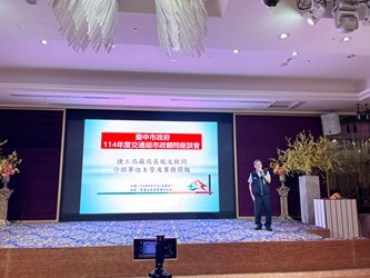 台中市政府捷運工程局今(12)日舉辦「交通組市政顧問交流座談會」,邀請林敏霖等14位交通組市政顧問出席,捷運工程局長蘇瑞文及交通局長葉昭甫率領各級主管,及台中捷運股份有限公司董事長顏邦傑與總經理朱來順參與座談,共同就重大交通建設與施政成果進行交流,凝聚市府各界共識。