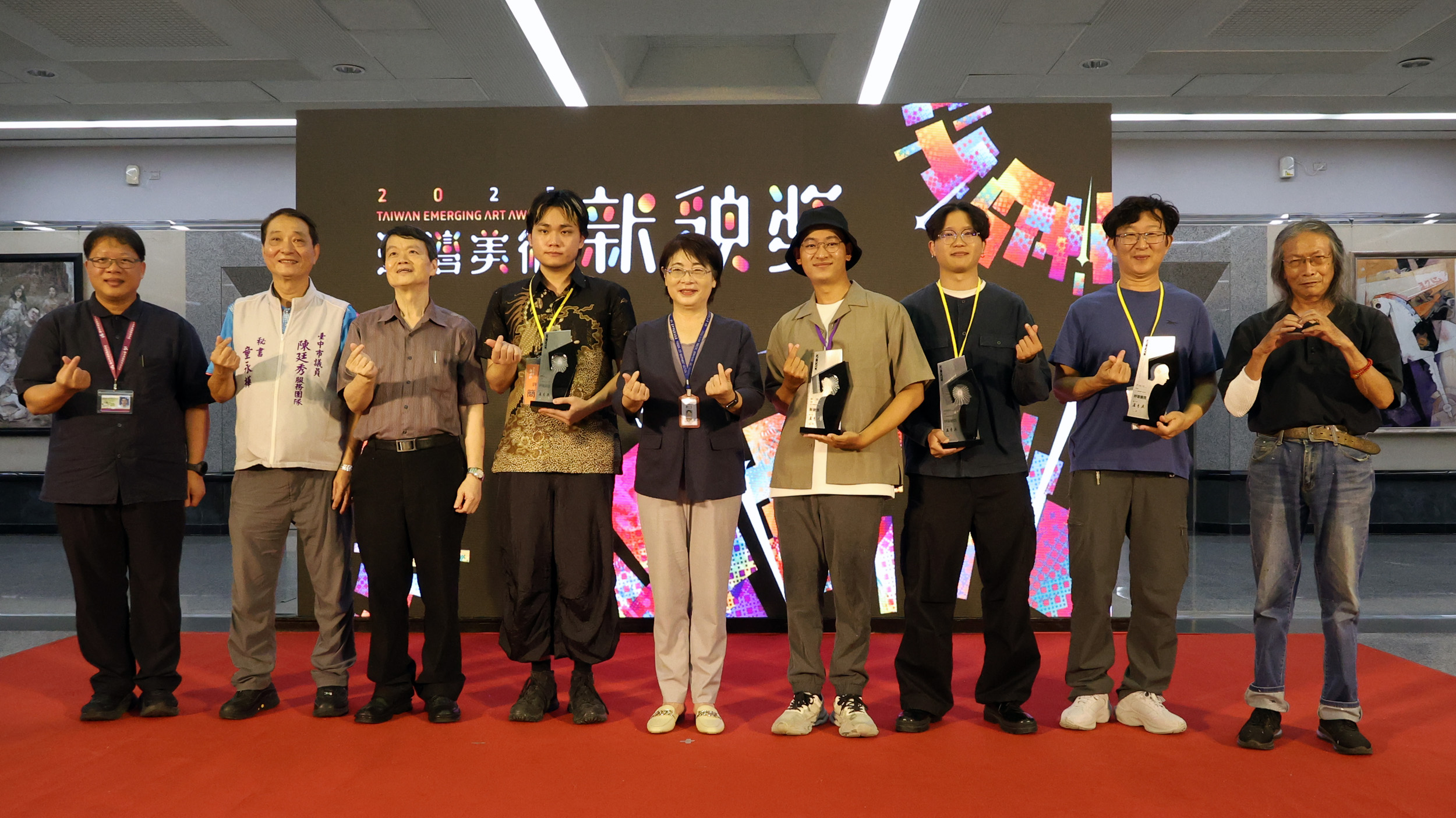 今日開幕式貴賓雲集,包含文化局長陳佳君、評審團召集人國立台中教育大學美術系教授莊明中、評審委員高雄師範大學美術系榮譽教授洪根深、及多位藝術家出席,立法委員蔡其昌、顏寬恒及台中市議會副議長顏莉敏、台中市議員陳廷秀服務處也特派代表,蒞臨現場獻上得獎的榮耀與祝福!