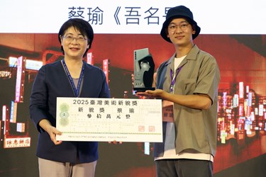 在變動與重構不斷發生的時代,藝術,是我們對世界提問的方式。「2025臺灣美術新貌獎」年度展覽,於8月9日至10月19日,在台中市港區藝術中心正式展開。此屆展覽共展出46件入選作品,橫跨影像、裝置、水墨、新媒體等多種形式,呈現當代創作者如何從日常的縫隙中,拼貼出屬於自己與時代的未竟之詩。今(13)日舉行頒獎典禮,邀請各界藝文界人士分享得獎創作歷程與心得。