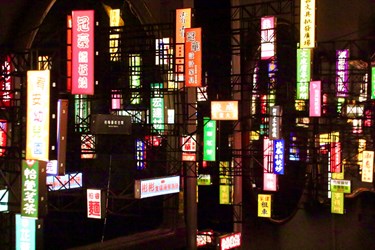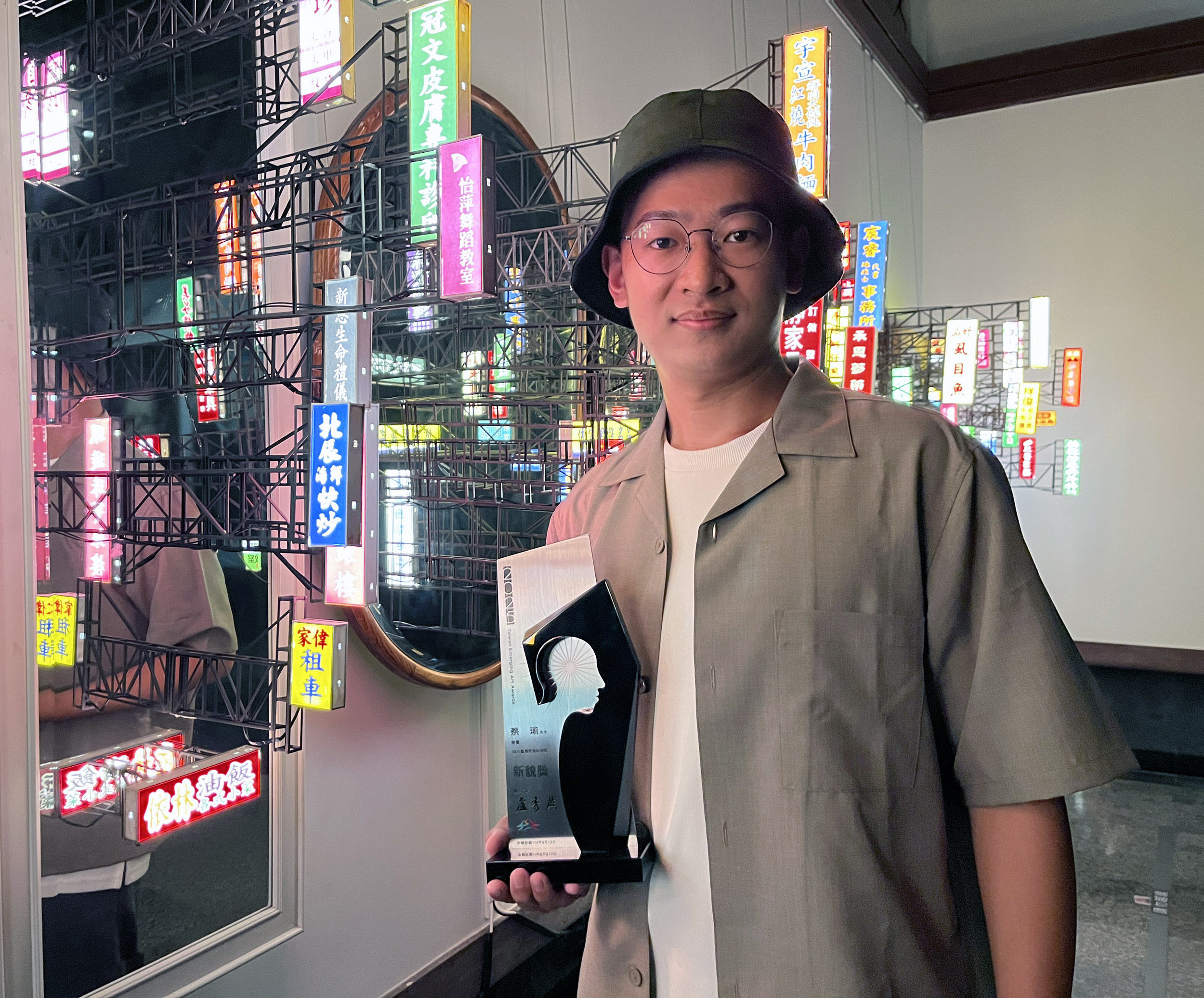 文化局說明,這次最大獎由蔡瑜的《吾名是》獲得。他以街頭招牌、鏡面與微縮景觀,重構一座既熟悉又模糊的城市風景。招牌指涉那些曾存在卻被遺忘的空間與人群;鏡面則映照觀者自身,召喚對城市記憶的片段回憶。夜色背景下,喧囂退去,只留下靜謐凝視。作品以極簡語彙傳遞深層思辨,獲評審一致肯定。
