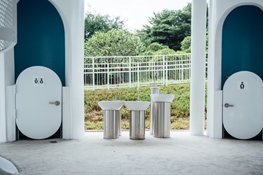 全台最具設計感、兼具親子友善理念的公廁今(22)日正式在台中亮相!市長盧秀燕推動「台中美樂地計畫」,持續改善公園廁所環境。市府建設局攜手台灣設計研究院,投入1,500萬元完成「文心森林公園陽光公廁改善工程」,以親子導向為核心,導入全齡共融思維,融合美感設計、智慧科技與性別友善理念,打造宛如「親子小白宮」的友善如廁空間。適逢雙十國慶將至,文心森林公園更是國慶日晚會的主場地,新落成的陽光公廁不僅提升便利性,也展現城市美學,成為國慶活動的一大亮點。