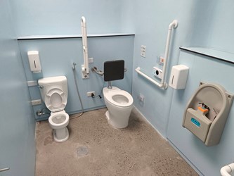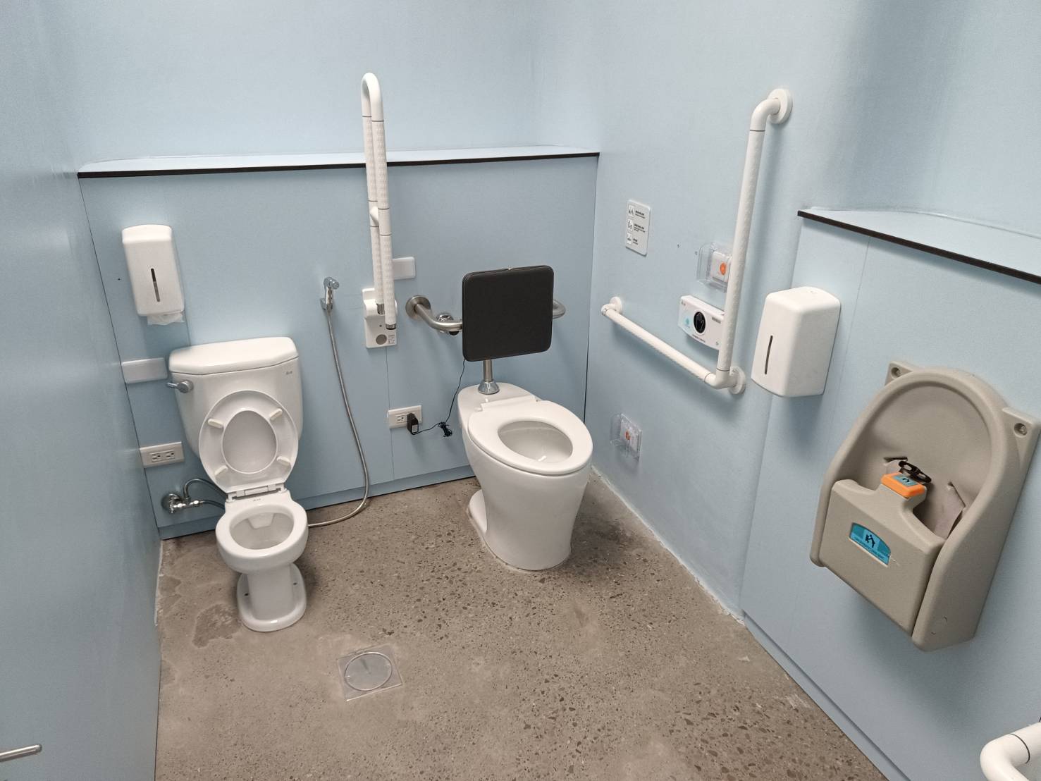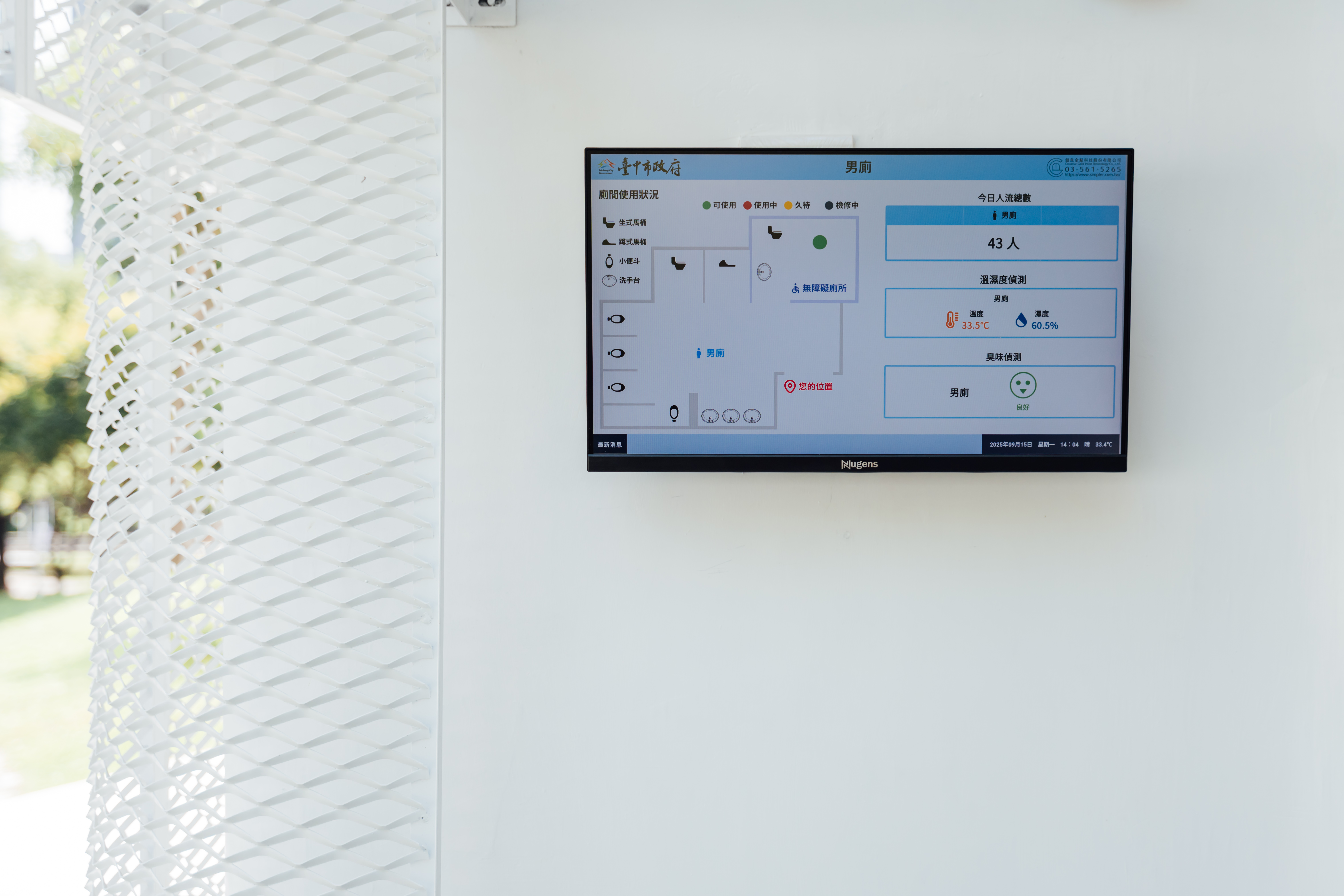 陳局長進一步指出,建築外牆採擴張網結構與自動監測排風系統,改善通風與採光;並導入智慧維管系統,包括QR Code即時通報、滿意度回饋與「久待示警功能」,以及物聯網(IoT)耗材監控,全面提升管理效率與安全性。平面設計融入風、光、水、景四大自然元素,室內以海水藍為主色,洗手區獨立設置保持乾淨乾燥;外部則拓寬步道、重整花圃,讓公廁兼具功能與美感。