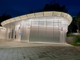 此外,建設局指出,夜間特別設計柔和燈光,外牆映照下宛如暖光城市光盒,為夜間公園增添安全與溫馨氛圍,展現台中在城市美學與人本關懷上的細膩精神。