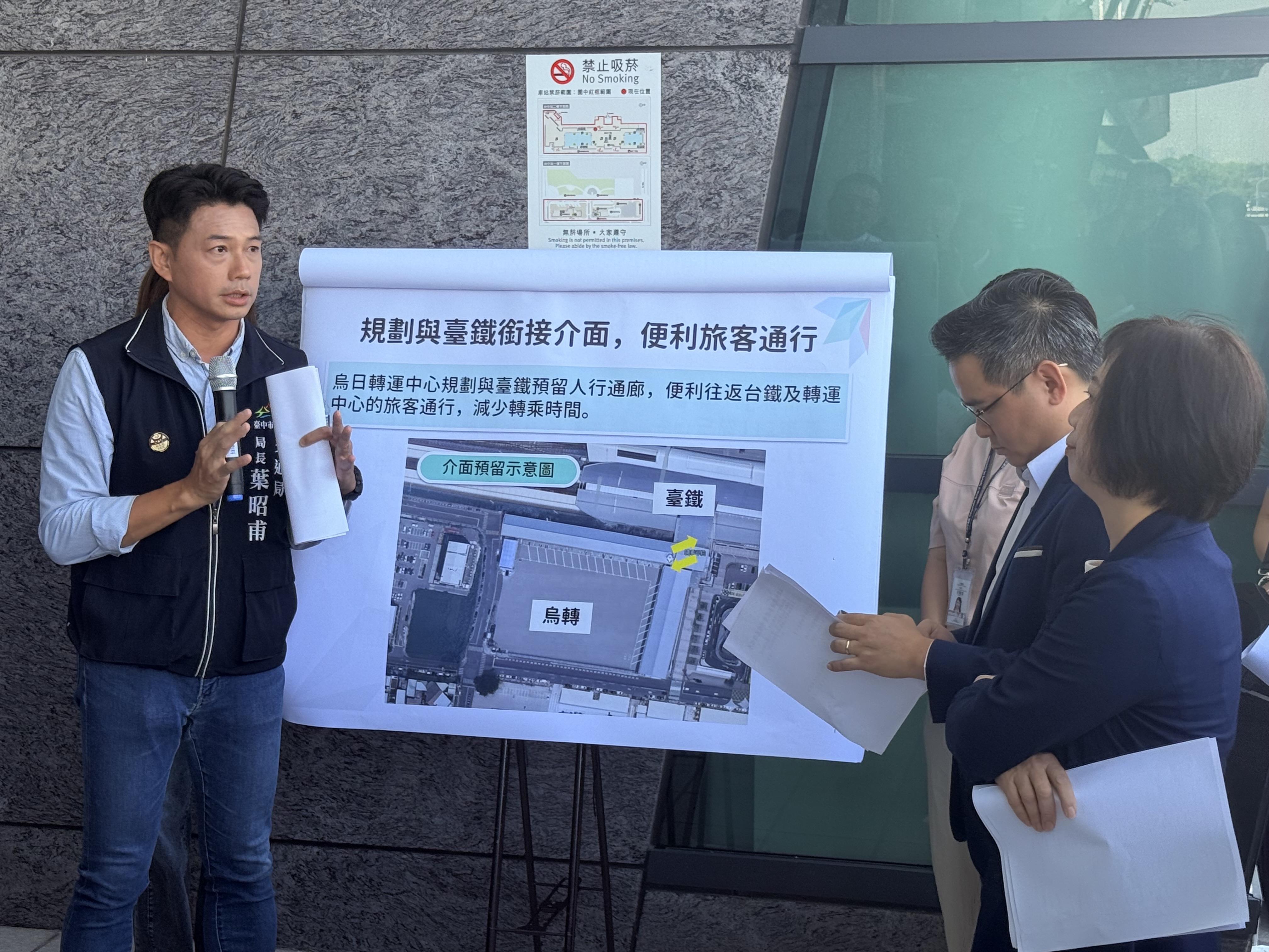 黃副市長進一步說明,市長盧秀燕上任後秉持「開不了工的要開工、完不了工的要完工」原則,推動豐原、水湳、大台中及烏日等四大轉運中心。其中豐原轉運中心已於112年啟用,水湳及大台中轉運中心預定115年完工,工程進展穩定;烏日轉運中心則正在規劃中,預定設於烏日區高鐵段85地號(鐵道局用地),將於今年完成旅運需求規劃,未來並規劃連接台鐵設置人行通廊,打造便利無縫的轉乘空間。