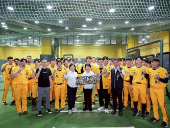 中華職棒36年總冠軍賽即將開打,中信兄弟首戰將於18日在台北大巨蛋迎戰季後挑戰賽的勝隊樂天桃猿隊,市長盧秀燕今(15)日到洲際棒球場力挺在地球隊中信兄弟,鼓勵全體隊員並致贈水果禮盒和能量果凍,為選手們加油打氣。「邁『象』總冠軍,締造二連霸!」,盧市長表示,相信中信兄弟一定會旗開得勝、連戰連捷,將總冠軍獎盃再次抱回台中!