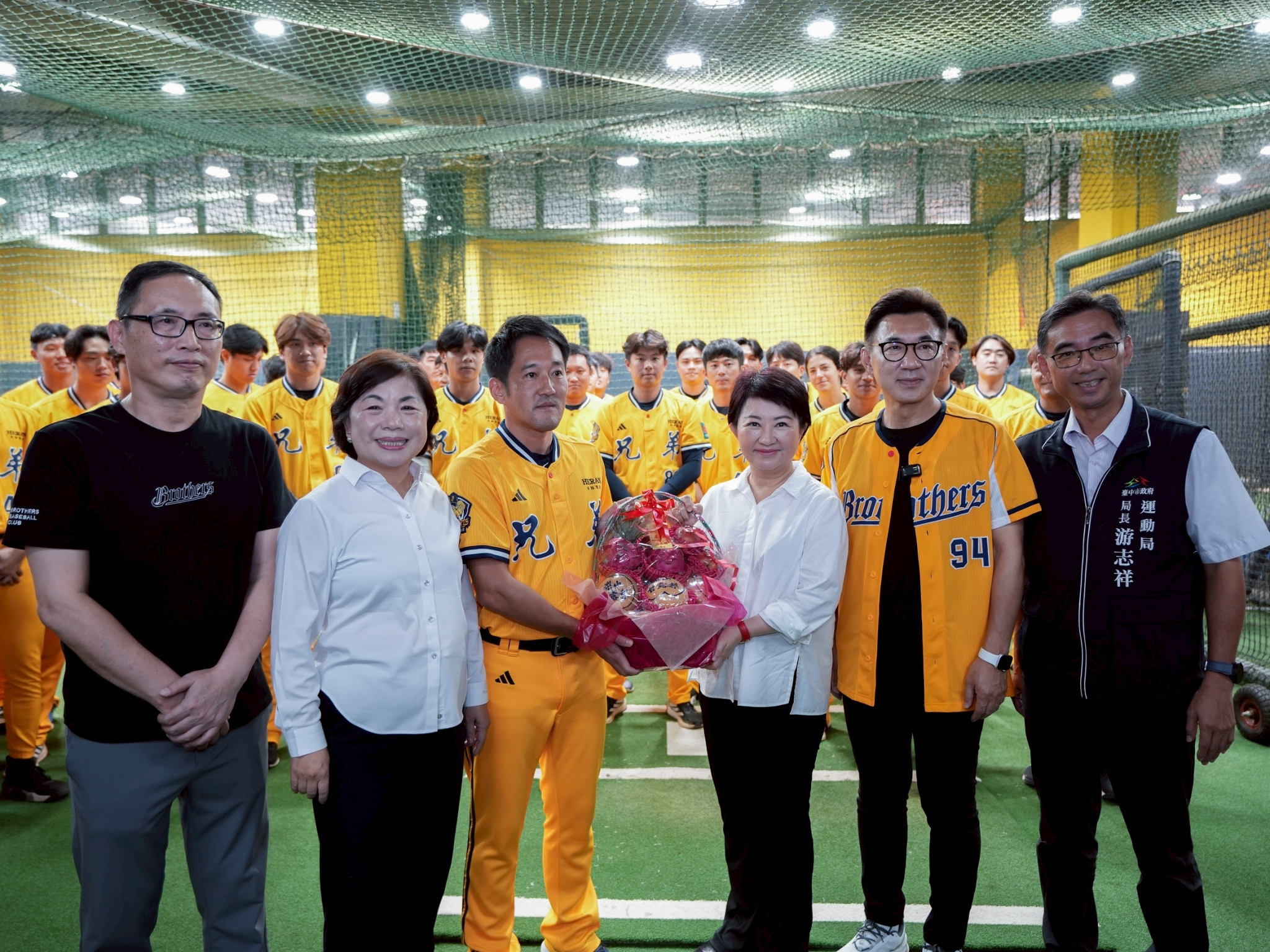 今日出席貴賓包含市長盧秀燕、立法院副院長江啟臣、立法委員楊瓊瓔、運動局長游志祥、北屯區副區長徐宏銘、中信兄弟領隊劉志威、總教練平野惠一及全體教練及球員、午資開發股份有限公司總經理李勳欽等貴賓均出席共襄盛舉。(10/15*15)*運動局