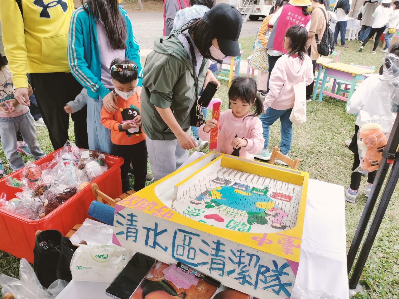 環保局分享,邱隊長112年1月初至清水區清潔隊報到,透過走訪清水、認識清水,逐步融入清水、喜歡清水,並向其他隊長前輩請益及用心觀察體會,帶領同仁發揮團隊精神,共同努力推動為民服務工作。初到清水即配合該區第一次舉辦「台中市民野餐日」活動,她與同仁一起動腦動手,以回收物打造夜市彈珠檯、套圈圈,主打「復古童樂會」邀民眾回味童年樂趣,為環境教育向下紮根。近期清水轄內各幼兒園師生總共4梯次超過240人次踴躍來訪,透過大小活動累積好評、提高正面形象,邱隊長所帶領的清潔隊不僅走入人群、更吸引人群走入清潔隊。