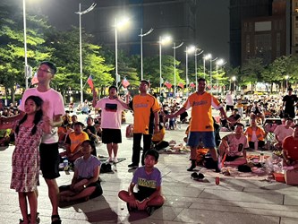 運動局長游志祥表示,「黃潮不僅是一種顏色,更象徵團結與榮耀的力量」,越關鍵的時刻,越能看見台中人的凝聚與熱情。他指出,市府已於10月18、19日連續舉辦前兩場直播應援活動,吸引逾2,000名球迷熱情集結,黃旗揮舞、加油聲不斷,現場氣氛宛如巨蛋延伸,讓府前廣場成為中信兄弟的「第二主場」。