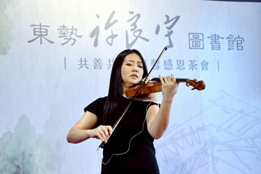 今日活動由小提琴家陳依廷以〈愛的禮讚〉悠揚開場,在溫柔動人的琴聲中揭開序幕,包括市議員吳振嘉、副秘書長張大春、捐贈人許景堂及李碧虹伉儷、龍寶建設董事長張麗莉、文化局副局長施純福、市府客委會主委江俊龍、文化局專門委員潘美君、東勢區長翁培真、中市圖秘書陳慧珍、名傑營造股份有限公司總經理蘇宏大、建築師戴育澤、許良宇舅舅李德興(北興里長)、在地泰昌里長徐鎮富、中寧里長廖蒙歆等人皆到場,立法院副院長江啟臣、市議員蔡成圭服務處、共善計畫廠商也派員共襄盛舉。(10/23*16)*文化局