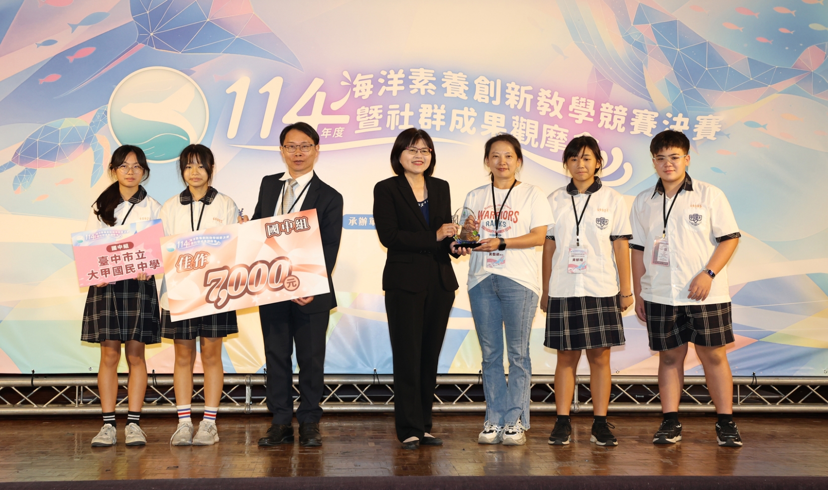 教育局指出,台中市相當重視本次海洋素養創新教學競賽,自今年5月起徵選19位優秀教師參加多場次培訓課程,並在9月時完成校內公開觀議課,給予教師們相關課程及教案之建議,歷經初賽書面審查及分區複賽後,台中市共有8支隊伍代表進入決賽,包括國小3隊、國中3隊、高中2隊等,所屬學校進入決賽數為全國第一,最終共計9位教師獲獎。