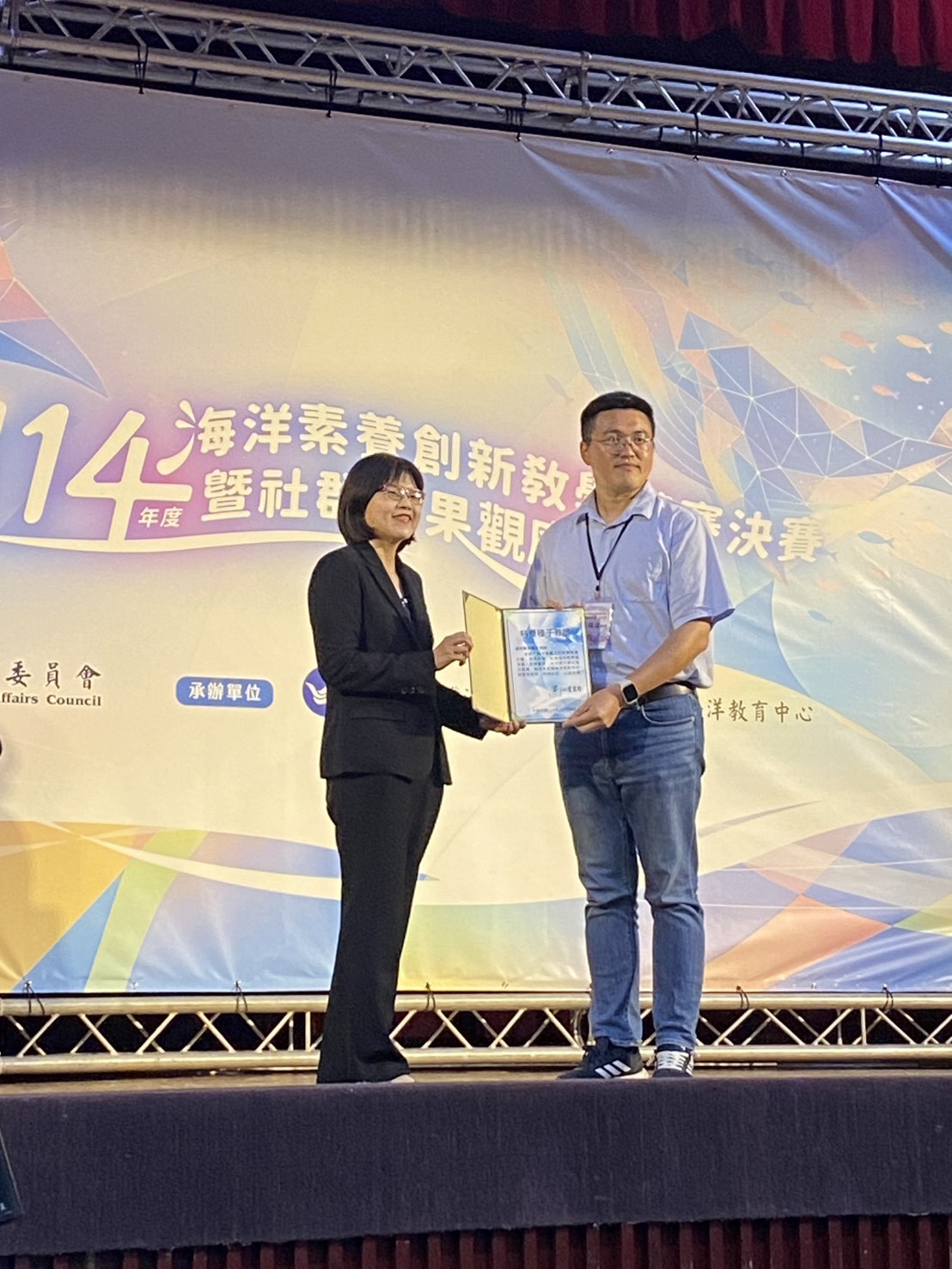 為輔導各縣市將海洋素養融入教學中,海洋委員會辦理114年度「海洋素養創新教學競賽」,經過層層關卡,昨(29)日在台中世界貿易中心舉辦決賽暨成果觀摩會,由來自全台灣各縣市共30支決賽隊伍共同角逐,台中市政府教育局專門委員劉姵君特別到場為台中選手們加油打氣,最終共計9位教師獲獎,成果豐碩。