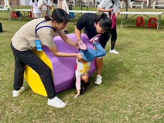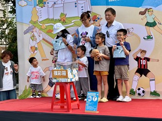 游局長表示,今年活動安排了4個抽獎時段,每一場次都送出55吋液晶電視與筋膜槍,現場驚呼連連、驚喜不斷。參加者完成「金牌運動家」、「小小極限體能挑戰」及「小書蟲閱讀角」三個集點挑戰後,還能獲得刮刮卡刮出好禮,氣氛悠閒有趣。