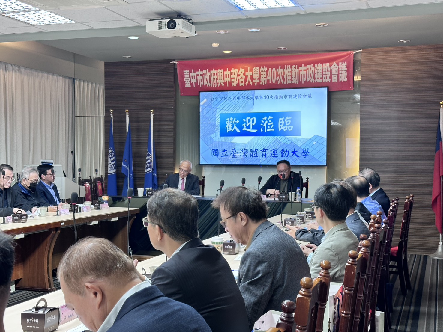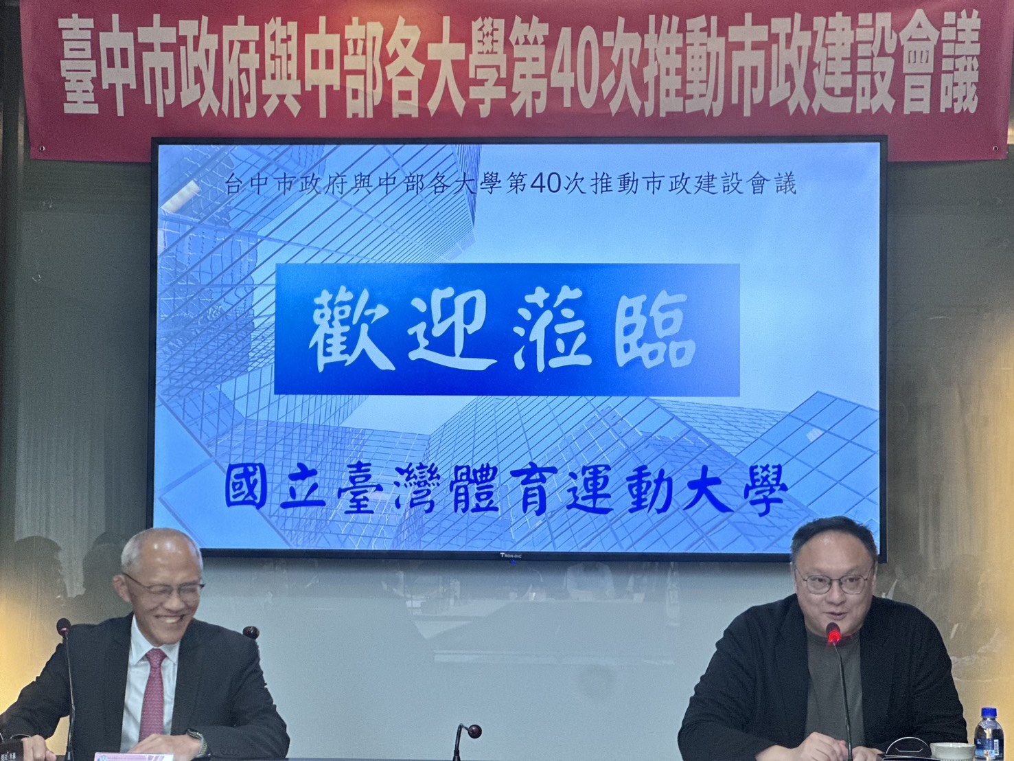 為推動智慧運動與健康城市永續發展,台中市政府今(28)日攜手國立台灣體育運動大學舉辦「第40次推動市政建設會議」,由副市長鄭照新代表市府與國立台灣體育運動大學校長許光麃共同主持,以「推展全齡運動,場館結合科技,打通永續健康城市經脈」為主題,透過官學交流,共同探討科技如何深化運動服務、提升市民健康、並打造更全面的全齡運動城市藍圖。