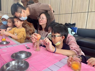 農業局說明,近年來動保觀念提升,動物福祉是畜牧產業努力的方向。此次親子活動規劃動物友善飼養課程,觀察母雞的習性,以瞭解母雞生活型態,並以互動方式介紹動物福利的重要性及雞蛋構造與營養價值,藉由親子共同料理體驗,製作香氣滿滿的蛋類小點心。
