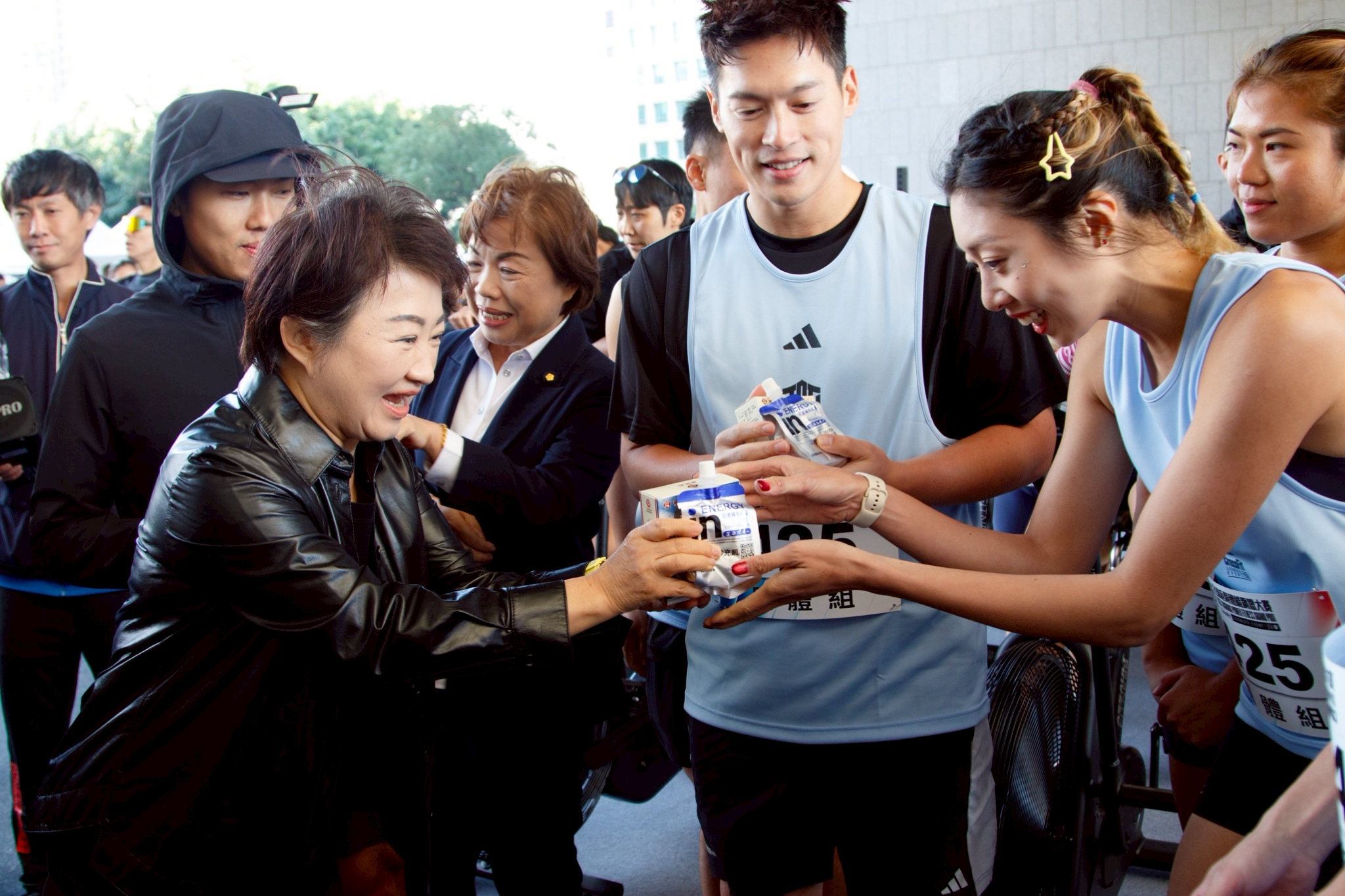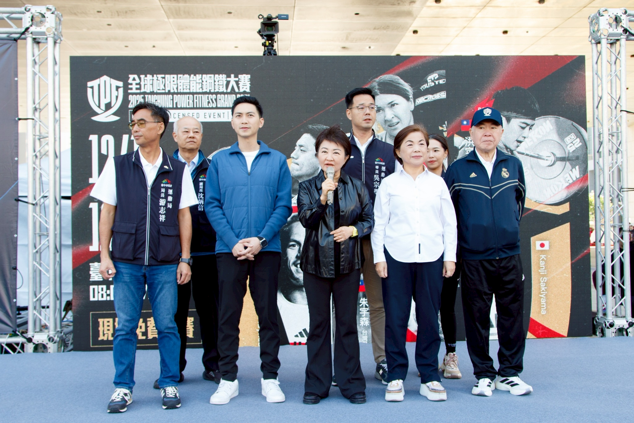 全球極限體能鋼鐵大賽在台中市府廣場持續熱力開戰!今(14)日賽事進入第2天,台中市長盧秀燕下午出席賽事,實際體驗多項運動設施,並前往暖身區近距離為國際選手、明星藝人以及台中最強地主隊加油,更親送幸運物「台中市徽」為台中隊加持。現場氣氛熱烈,展現城市作為國際運動舞台的能量。