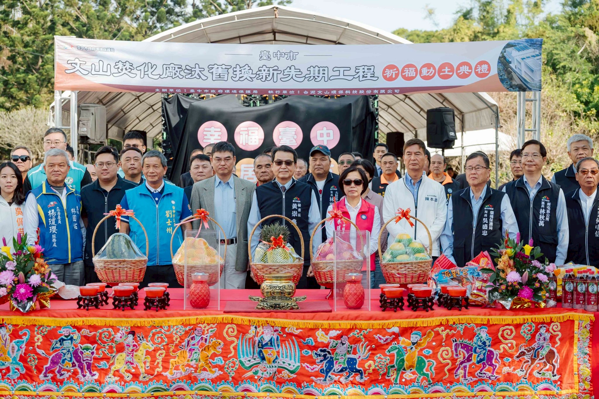 為提升老舊焚化廠處理效能、改善廢棄物去化量能及環境空氣品質,台中市政府推動文山焚化廠汰舊換新工程,今(22)日舉行先期工程祈福動土典禮。秘書長黃崇典代表市長盧秀燕出席致詞表示,文山焚化廠BOT案已於12月11日完成簽約,預計115年動工、118年底完工,119年正式營運,完工後將大幅提升垃圾處理量與發電效率,兼顧環保與能源發展,為台中市建立長遠穩定的垃圾處理機制。